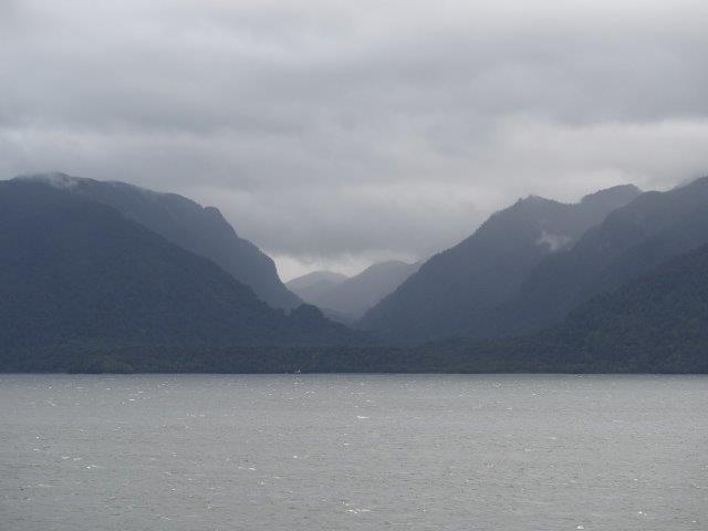 If you are a "map person," you might like this representation of where our ship is located (circle near the southern tip of Chile in Patagonia). Currently we are in the Gulf of Coronado. The map shows maritime traffic all over the world. It looks crowded, but generally we sail for hours and never see another boat, not even a fishing vessel. Temps have been mild, but it may be cold today. We anchor in Chacabuco and tender in to take a tour of Coyhaique and the Simpson Valley. Snow capped mountains in the background.